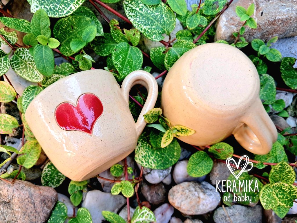 Keramický (kameninový) hrníček na ristretto ručně točený se srdíčkem