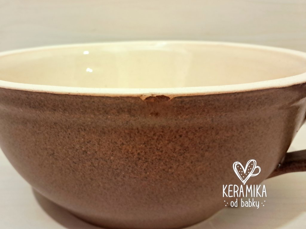 Keramická (kameninová) mísa na zadělávání a pečení chleba s dvěma uchy je praktická a v domácnosti jistě najde svoje místo, třeba na ovoce... Tmavě hnědá glazura na povrchu, uvnitř světlá. Kamenina se vypaluje při vysokých teplotách, díky čemuž je odolná a při správném používání vydrží mnoho let. Nabízíme ve dvou velikostech, menší má průměr 23cm a výšku 10cm a větší má průměr 27-28cm a výšku 12cm. Objem větší formy je zhruba 4l. V nabídce je také malá mísa se slevou, lehce obitá nahoře u ucha a na druhé straně má také v horním okraji nedokonalost v glazuře ( obě nedokonalosti jsou na fotkách...) Ruční práce, vyrobeno v České republice, Keramika Dub